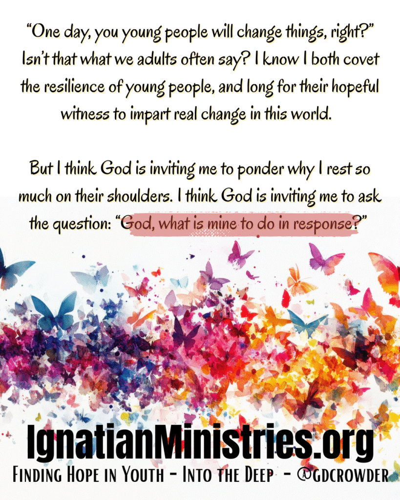 “One day, you young people will change things, right?” Isn’t that what we adults often say? I know I both covet the resilience of young people, and long for their hopeful witness to impart real change in this world.
